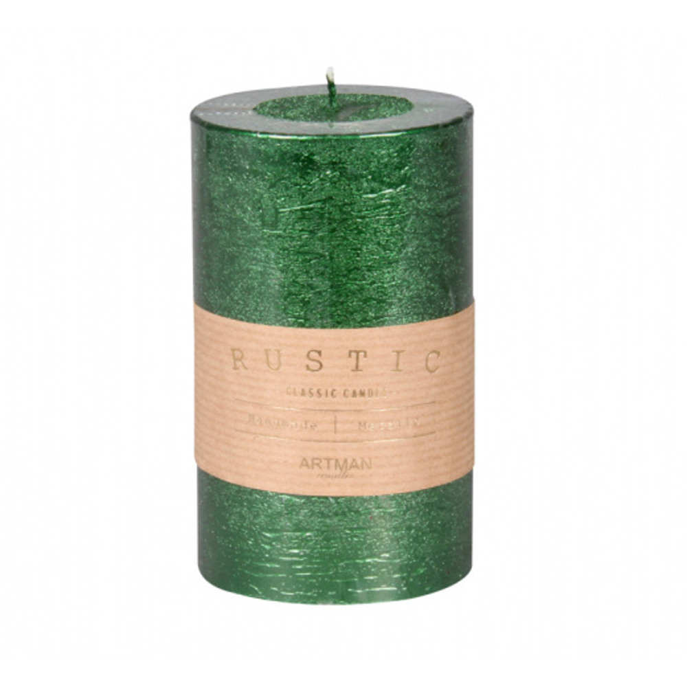 Svíčka válcová RUSTIC metalická zelená 12cm