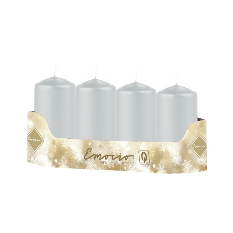 Svíčka válcová metalická stříbrná 10cm/4ks