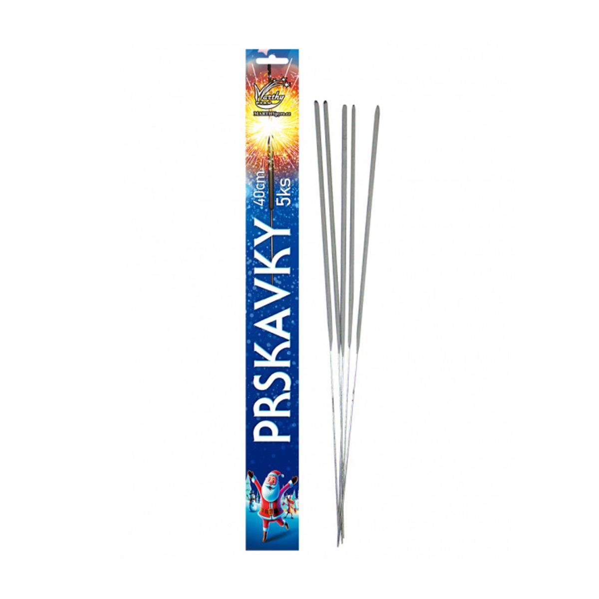Rozjasněte každou oslavu nebo sváteční chvíli klasickými prskavkami v balení po 5 kusech. Ideální pro Vánoce, Silvestr, narozeniny i romantické okamžiky. Vytvoří krásný jiskřivý efekt a navodí tu pravou slavnostní atmosféru. Prskavka se při svém hoření nesmí držet v ruce, je nutné dodržovat bezpečnostní pokyny uvedené na obalu. Kategorie pyrotechnických výrobků: F1 (velmi malé nebezpečí, zanedbatelná úroveň hluku, od 15 let).
