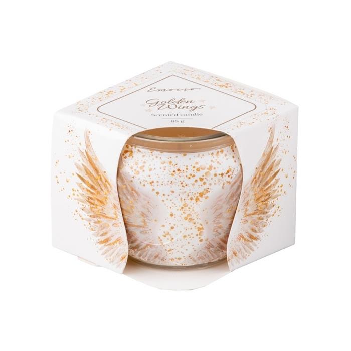 Elegantní vonná svíčka ve skle Golden Wings s jemnou vůní navodí tu pravou vánoční atmosféru. Krásná dekorace i dárek. UPOZORNĚNÍ: Při hoření nenechávejte svíčku bez dozoru a vždy ji umístěte na nehořlavou podložku.