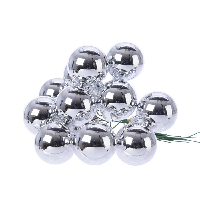 Svazková skleněná koule s drátkem 2,5cm leská stříbrná 12ks