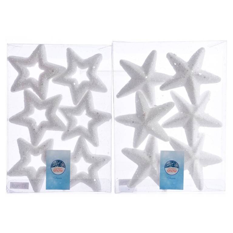 Sada šesti pěnových hvězd o velikosti 8 cm zdobených třpytivými glitry přináší do vašeho domova veselou a jiskřivou vánoční výzdobu. Díky lehkému materiálu jsou hvězdy snadno zavěsitelná na stromeček, věnce nebo jiné dekorace. V nabídce je mix motivů, které vám rozjasní každý vánoční kout.