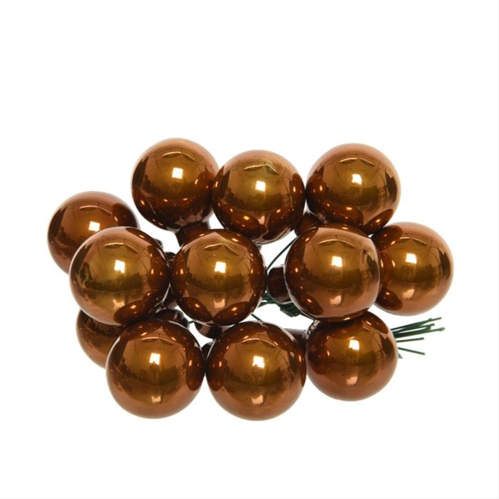 Svazková skleněná koule s drátkem 2,5cm lesklá skořicová 12ks
