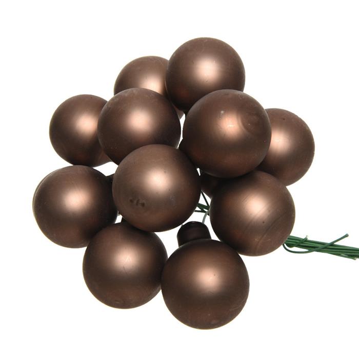 Svazková skleněná koule s drátkem 2,5cm matná hnědá 12ks