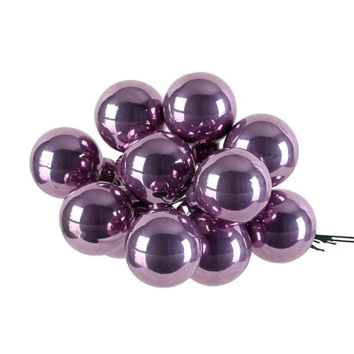 Svazková skleněná koule s drátkem 2,5cm lesklá sv.fialová 12ks