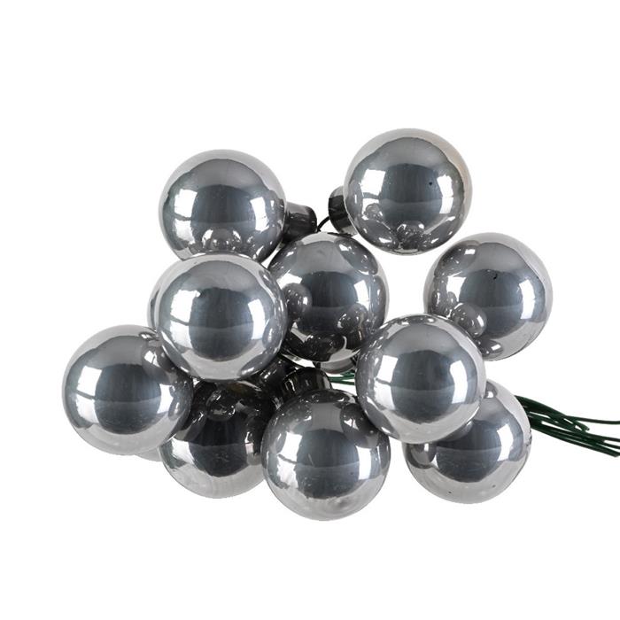 Svazková skleněná koule s drátkem 2,5cm lesklá šedá 12ks