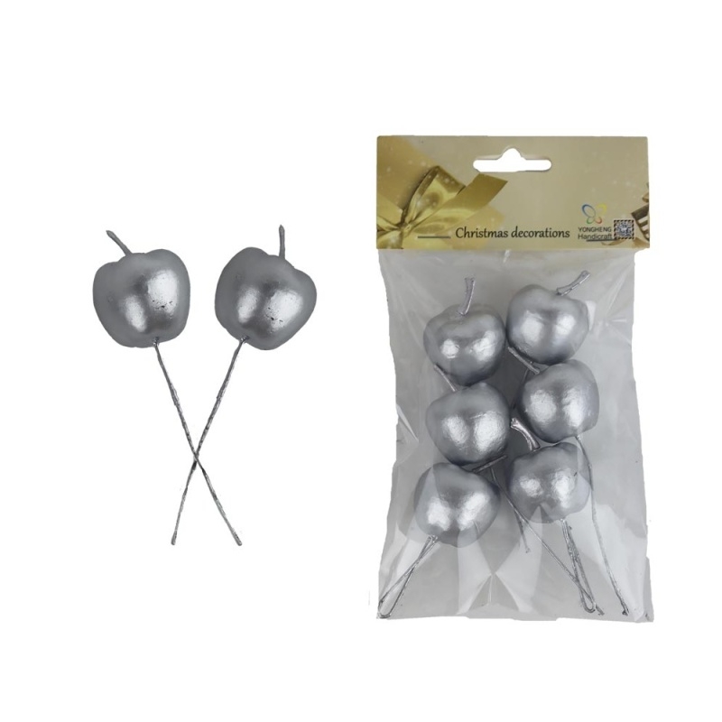 Sada 6 stříbrných umělých jablek na drátku je ideální přízdobou pro vaše podzimní i vánoční dekorace. Díky praktickému drátku se snadno upevní do věnců, květinových aranžmá či ozdob na vánoční stromek. Dodají vaší výzdobě elegantní a slavnostní nádech, který vydrží dlouhou dobu.