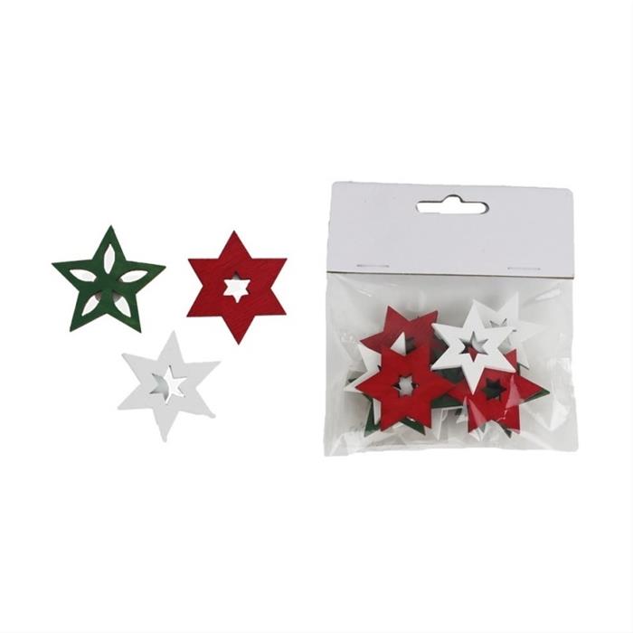 Přízdoba hvězda dřevěná lepící mix barev 12ks