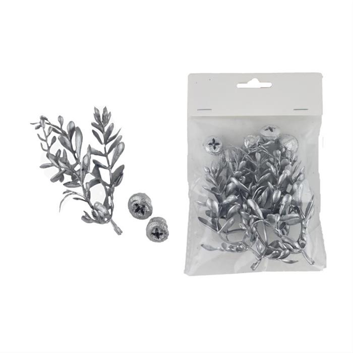 Přízdoba větvičky a plody umělé stříbrné 2-10cm