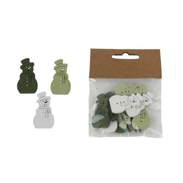 Přízdoba sněhulák s kloboukem dřevěný bílý/zelený 9ks
