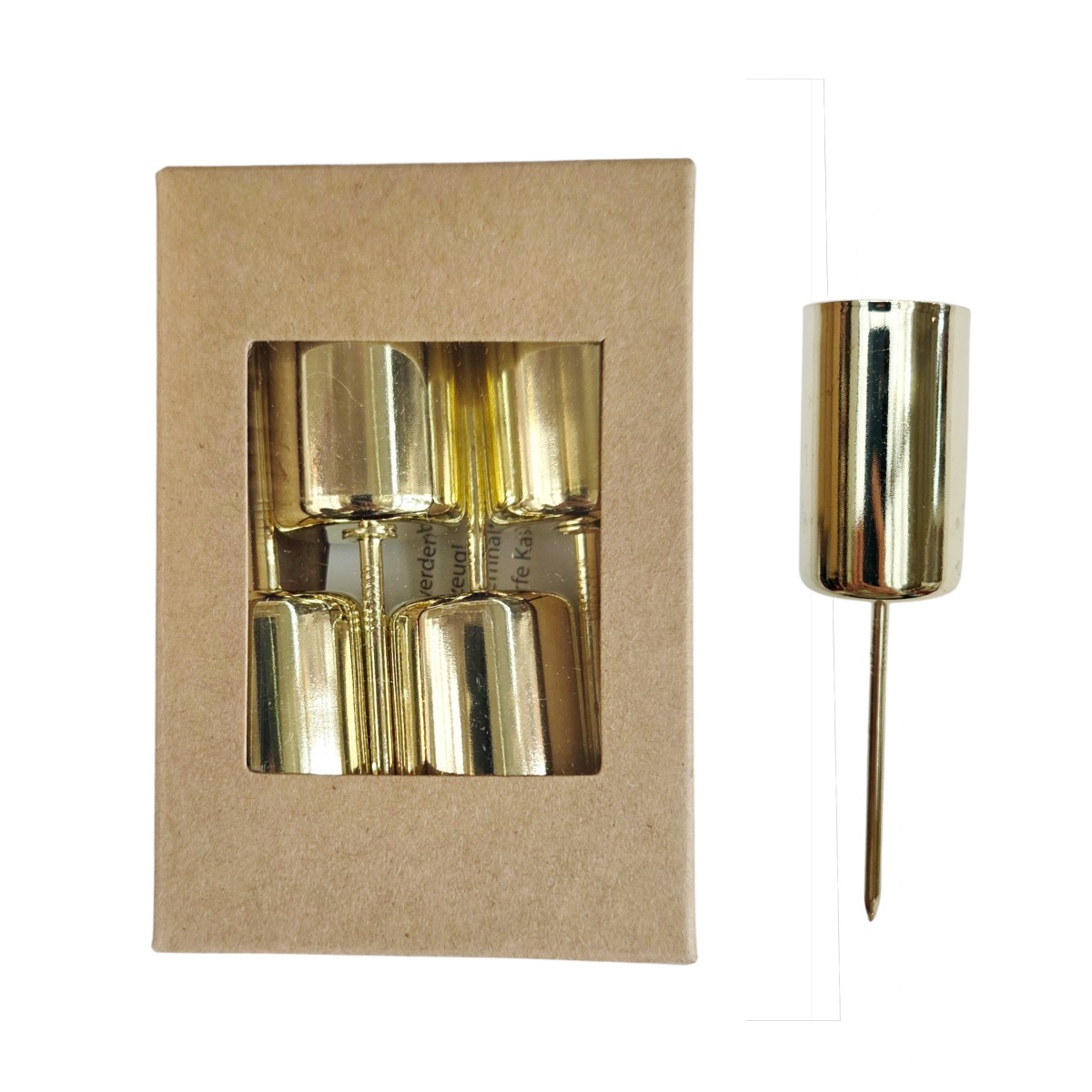 Sada praktických zápichovacích držáků na konické svíčky, které umožní snadné a bezpečné umístění svíčky do květináčů, aranžmá nebo sezónních dekorací. Zlaté provedení přidá vašim aranžmá luxusní a slavnostní nádech