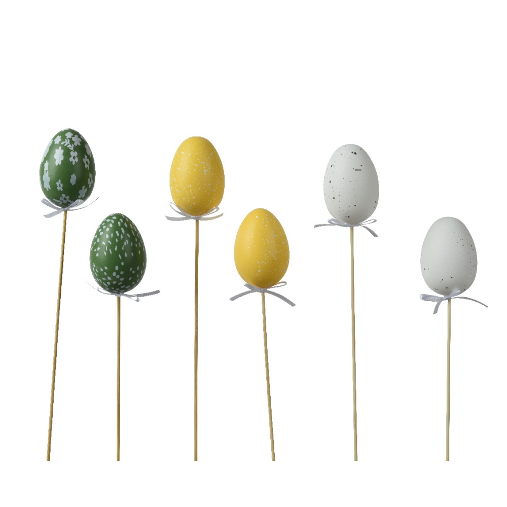 Vejce jsou vyrobena z lehkého a odolného polystyrenu a dodávána v mixu barev a dekorů, takže můžete vytvořit pestré a originální aranžmá.