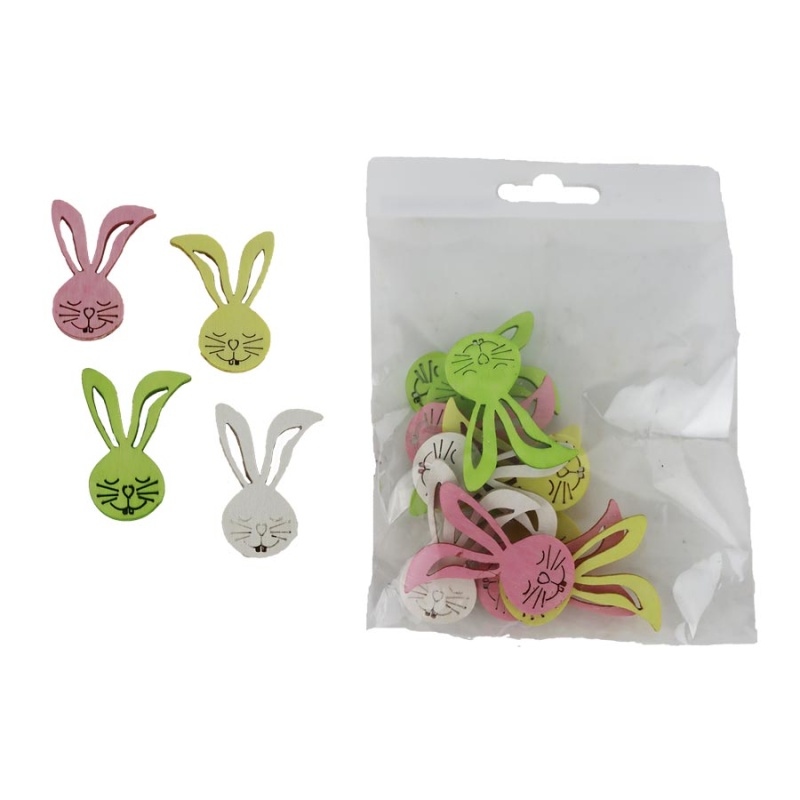 Sada dřevěných přízdob ve tcaru hlavy zajíce o velikosti 4cm.