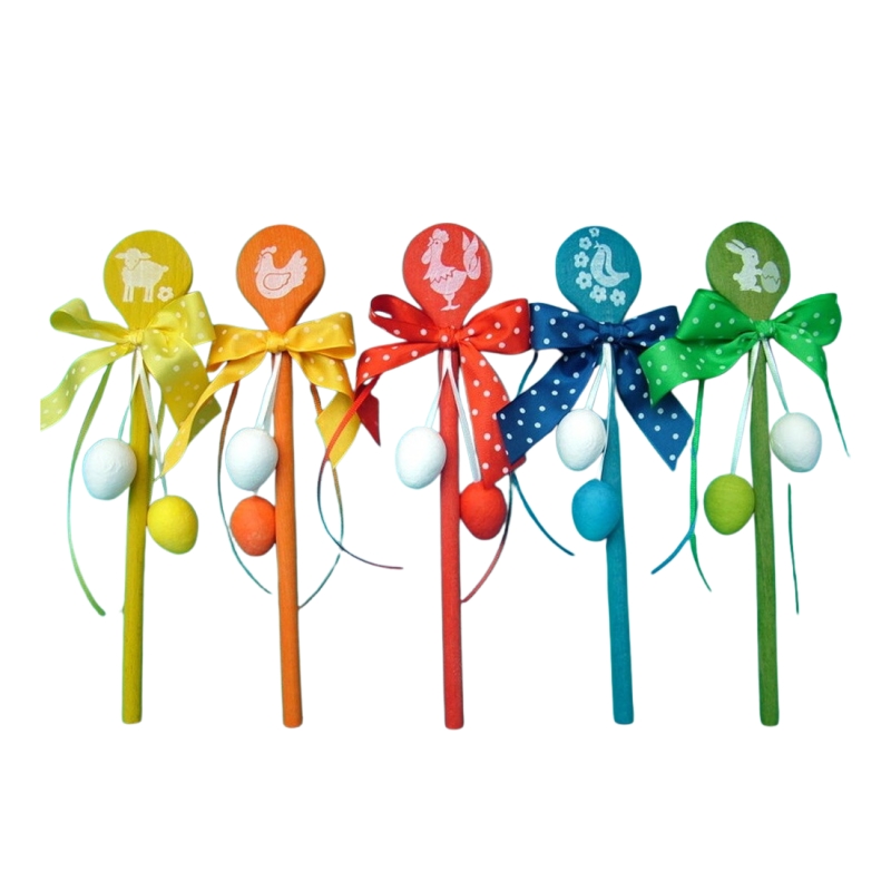 Vařečka s malovaným zvířátkem o délce 25 cm je veselá a praktická dekorace do kuchyně nebo pro velikonoční aranžmá. Vyrobena z kvalitního dřeva a zdobená ručně malovanými motivy zvířátek, přináší hravý a barevný detail do každého prostoru. Lze ji použít jako praktickou kuchyňskou pomůcku, zavěsit jako dekoraci nebo doplnit velikonoční věnce a aranžmá. Sada v mixu motivů nabízí pestrost a možnost sladit dekoraci s ostatními doplňky.