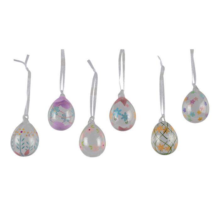 Ozdoba skleněné vejce s květy, 6 cm, mix je elegantní závěsná dekorace, která přinese jemný a slavnostní nádech do vaší jarní nebo velikonoční výzdoby. Každé vejce je pečlivě zpracováno a zdobeno jemnými květy, což zajišťuje dekoraci vysoké kvality a estetického dojmu.