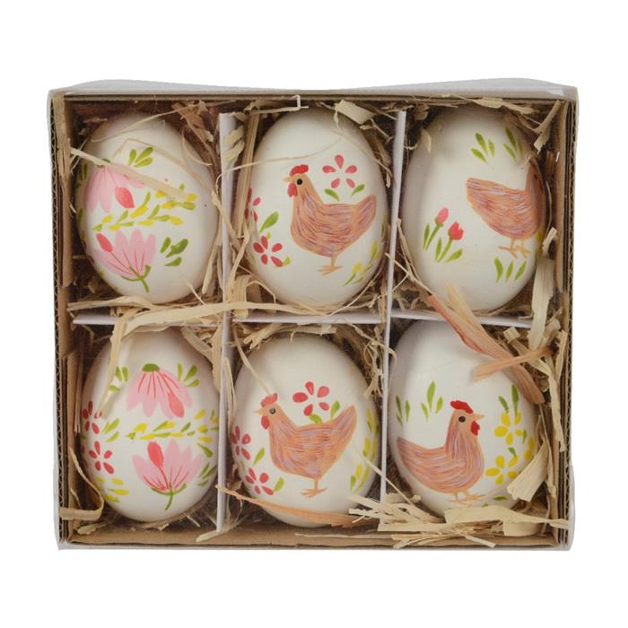 Ozdoba vejce s květy/slepicí 6ks