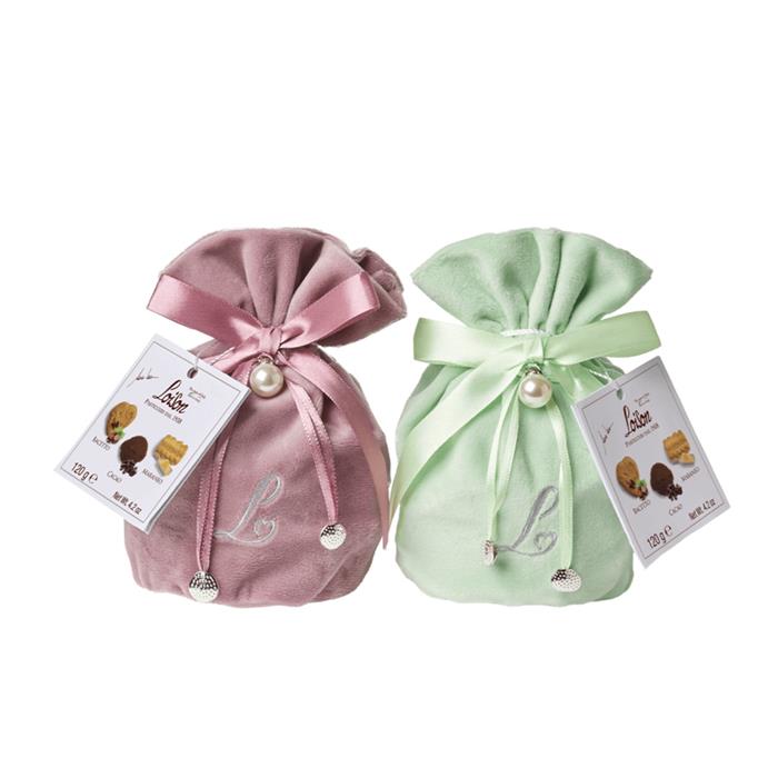 Loison Sušenky 3 druhy - BACETTO, CACAO, MARANEO v hebkém sáčku růžový/šedý mix 120g