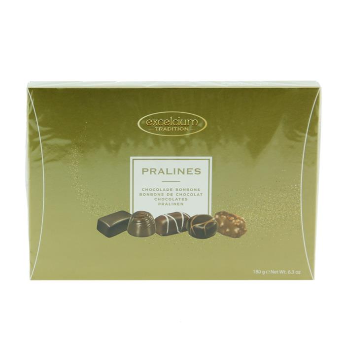 Složení: cukr, pšeničný škrob, glukózový sirup, sójová mouka, kakaové máslo, palmový tuk, kakaová hmota, glukózo-fruktózový sirup, sušené plnotučné mléko, mléčný cukr, dextróza, arašídy 1,9%. lískové oříšky 0,8%, lecitin, invertáza, sójový olej, karamelový sirup, pomerančová kůra 0,2%, rýžová mouka, aromata pomeranč, vanilka, karamelka, meruňka, ameretto, krém (mléko), lískový oříšek, sůl, kys.citronová. Obsah kakaové sušiny v čokoládě min. 35% a mléčné čokoládě min. 25%. Výrobek může obsahovat skořápkatých plodů a vajec.