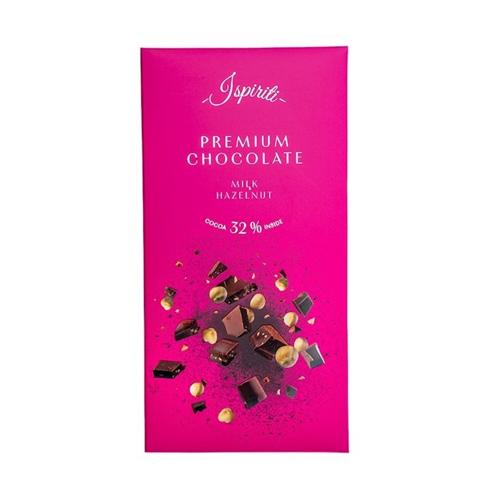 Čokoláda ISPIRITI mléčná 32% s lískovými ořechy 80g
