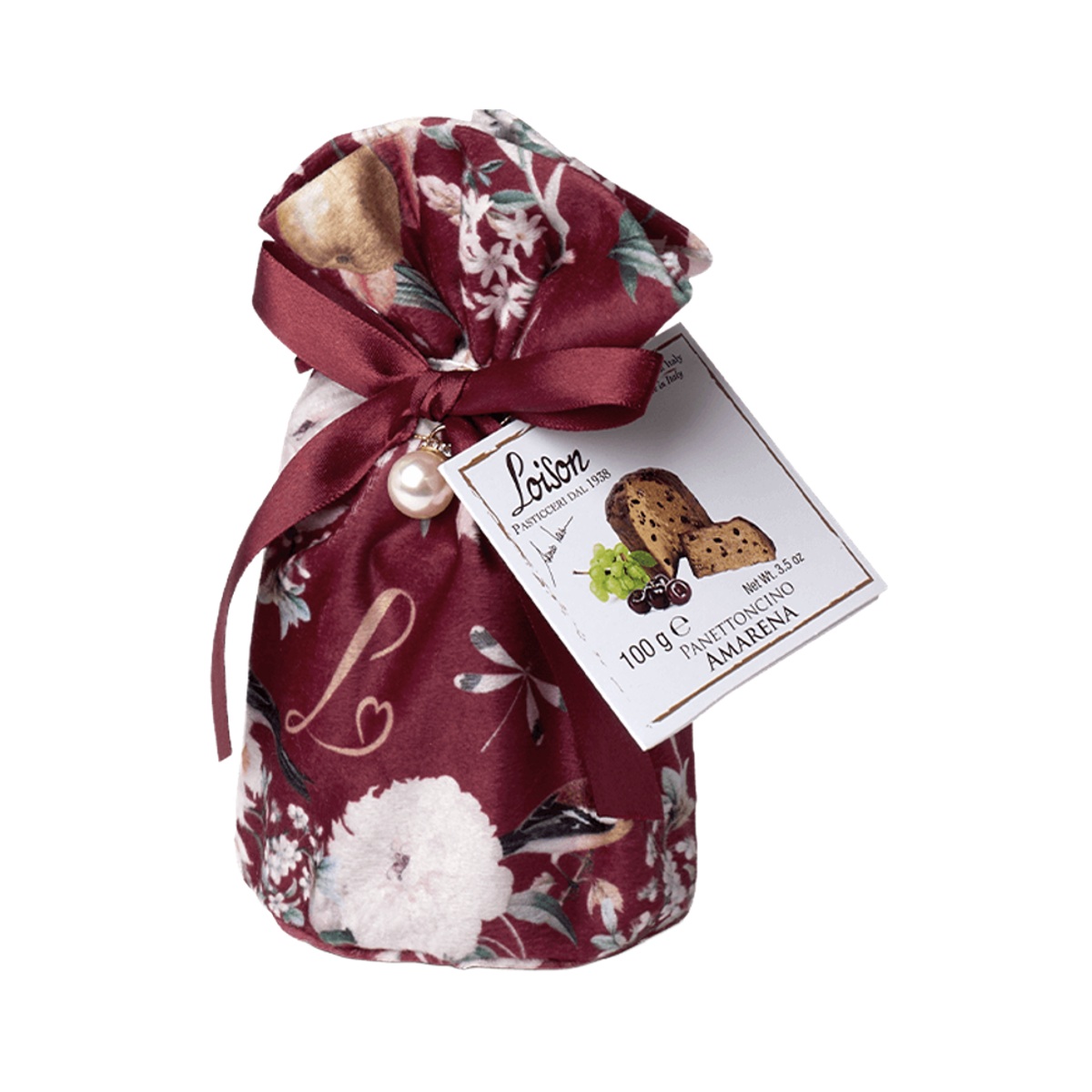 Tradiční italský panettone s rozinkami a kandovanými třešněmi. Objevte jedinečnou kombinaci sladké chuti a jemné vůně v panettone Loison Amarena, který spojuje šťavnaté rozinky a kandované kousky třešní amarena v dokonale vláčném, nadýchaném těstě.