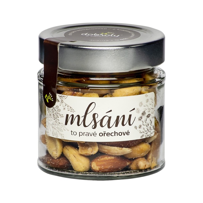 Složení:ARAŠÍDY 58 % (ARAŠÍDY, sůl max. 3 %, rostlinné oleje v různém poměru - slunečnicový/palmový/řepkový), MANDLE jádra pražená solená 14 % (MANDLE jádra loupaná, rostlinné oleje v různém poměru - slunečnicový/palmový, jedlá sůl), MANDLE jádra pražená uzená 14 % (MANDLE jádra, rostlinné oleje v různém poměru - slunečnicový/palmový, směs koření), KEŠU jádra pražená solená 14 % (KEŠU jádra, rostlinné oleje v různém poměru - slunečnicový/palmový, jedlá sůl).