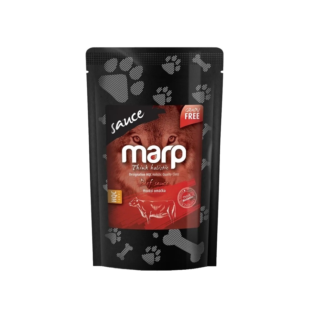 Marp Holistic hovězí omáčka je vhodné doplňkové krmivo pro psy a kočky. Jedná se o vhodnou alternativu k ochucení granulí. Stejně jako vývary se hodí k hydrataci organismu nejen při sportovním výkonu. Balení je lehké a skladné, ideální na výlety či cestování. Omáčky jsou zcela přírodní, bez umělých konzervantů a barviv s vysokým obsahem kolagenu.