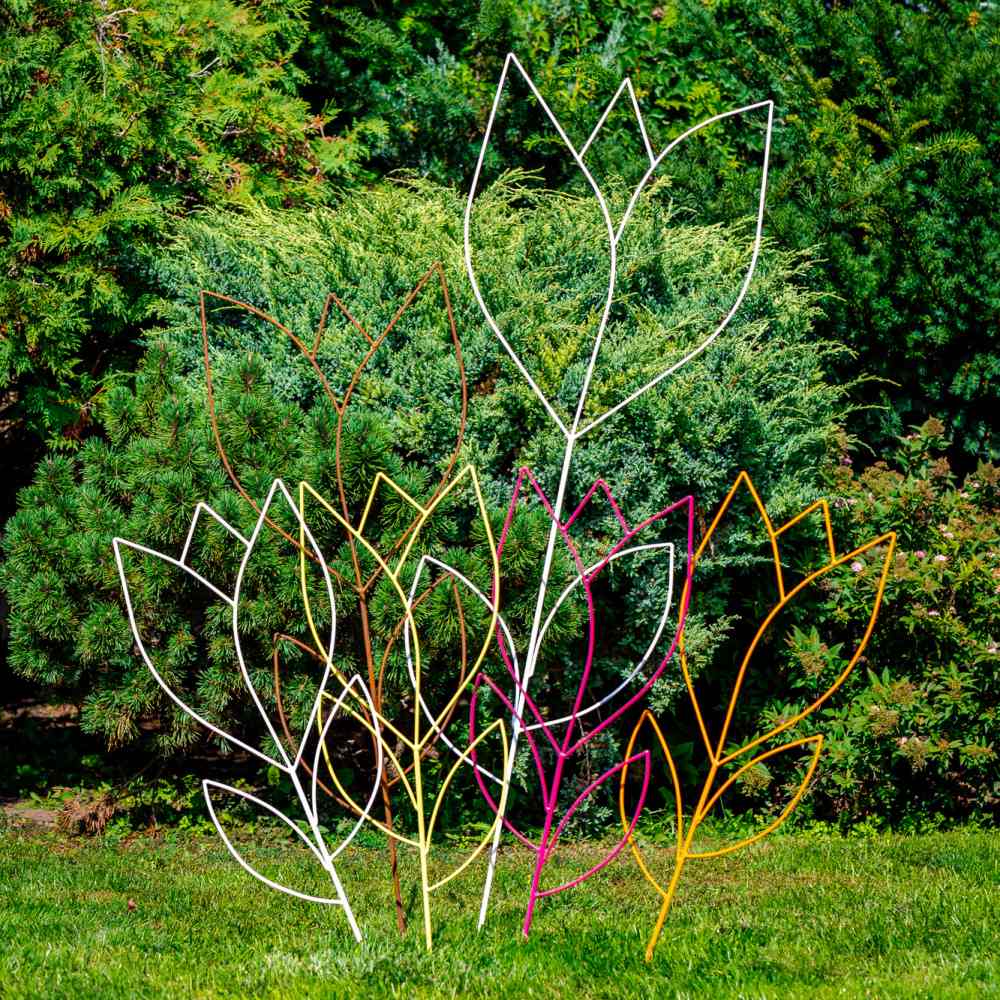 Kovový zápich odolný korozi a změnám počasí. Úprava materiálu: před lakováním povrchu probíhá tryskání ocelových broků a automatické odmaštění/fosfátování, poté lakování v práškové lakovně a následně vypalování při cca 200 °C po dobu cca 20 minut. Výsledkem je hladká, antikorozní barva a celoroční užívání na zahradě.