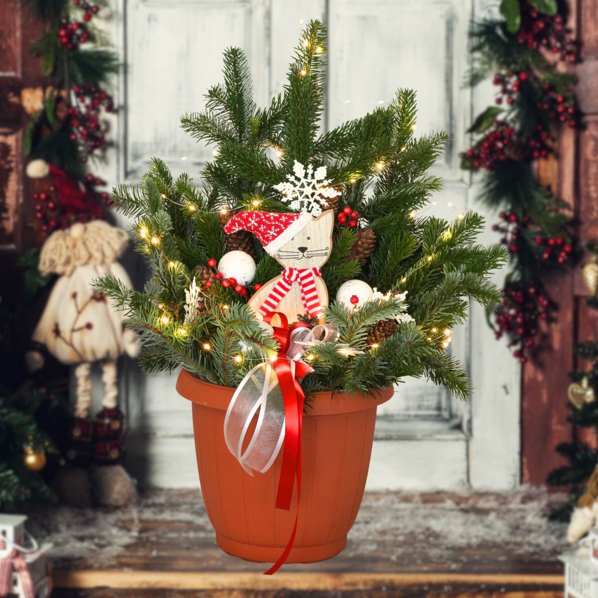 Přivítejte své hosty vánoční atmosférou hned u vchodových dveří. Vánoční výzdoba neznamená jen věnec na dveřích. Možností, jak dekorovat svůj dům je více. Tento květináč vyniká nejen svým vkusným provedením, ale i pečlivou přípravou materiálu a profesionální prací s materiálem. Květináč umístěte u vchodových dveří a dejte tak světu najevo, že vaše domácnost již žije svátečním vánočním časem.